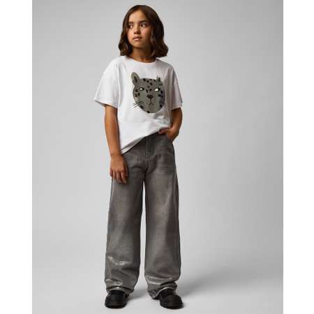 Широкие прямые джинсы для девочки Futurino Fashion серо-серебристого цвета.