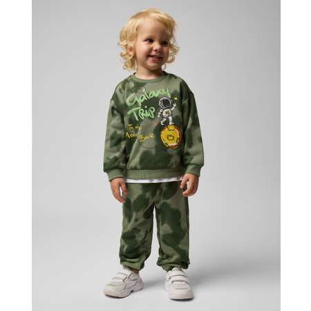 Комплект для мальчика Baby Gо Trend цвета хаки из брюк и свитшота с цветным принтом "Galaxy Trip".