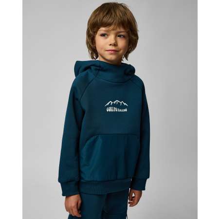 Тёмно-синее худи для мальчика Futurino Fashion с однотонным принтом и текстильным карманом-кенгуру.