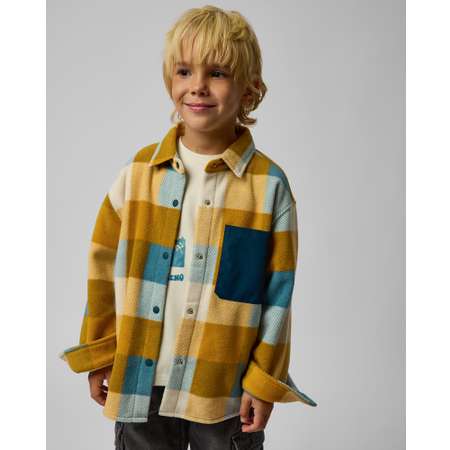 Флисовая рубашка для мальчика Futurino Fashion в цветную клетку, с текстильным нагрудным карманом.