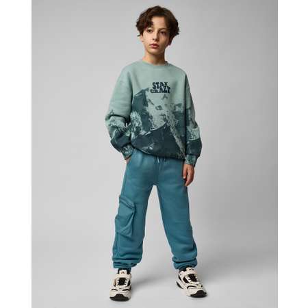 Однотонные брюки для мальчика Futurino Fashion бирюзового цвета с текстильным накладным карманом.