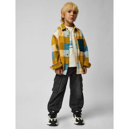 Утеплённые джинсы для мальчика Futurino Fashion тёмно-серого цвета с накладными карманами.