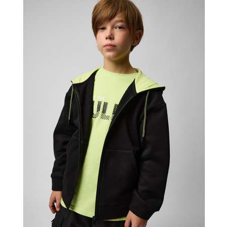 Толстовка для мальчика Futurino Fashion чёрного цвета с надписью на спинке.