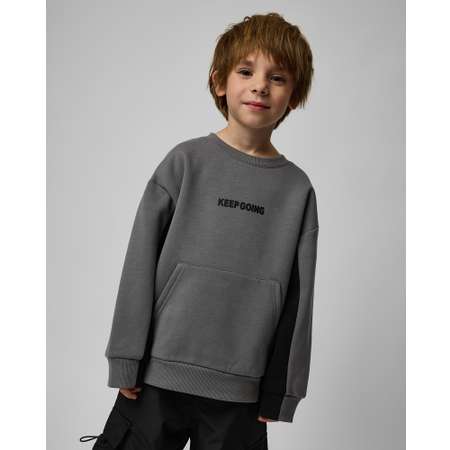 Серый свитшот для мальчика Futurino Fashion с чёрными вставками. Декорирован с двух сторон принтом с надписями.