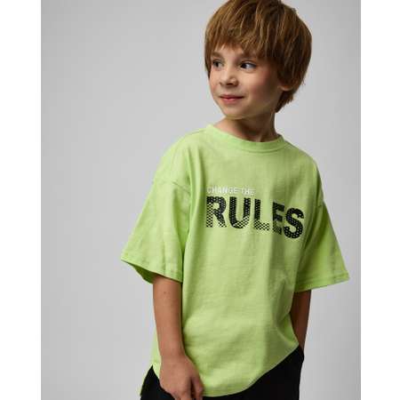 Яркая футболка для мальчика Futurino Fashion салатового цвета с надписью.