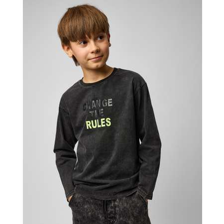 Серый лонгслив для мальчика Futurino Fashion с яркой надписью "Change the rules".