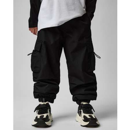 Утепленные брюки-карго для мальчика Futurino Fashion чёрного цвета с ярким поясом.
