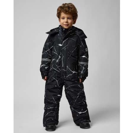 Зимний комбинезон для мальчика Futurino Cool чёрного цвета с контрастным принтом. Выполнен из ветрозащитного водонепроницаемого мембранного материала: