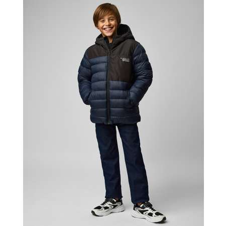 Стёганая куртка для мальчика Futurino тёмно-синего цвета со светоотражающим принтом.