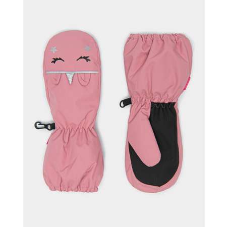 Утеплённые варежки для девочки Futurino розового цвета, с объёмным блестящим декором в виде единорогов.