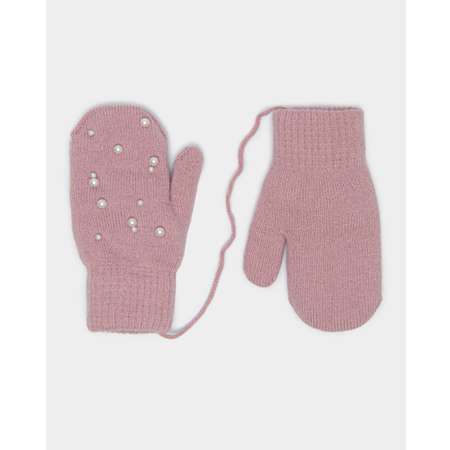 Двухслойные розовые варежки для девочки Futurino, декорированные жемчужными бусинами.