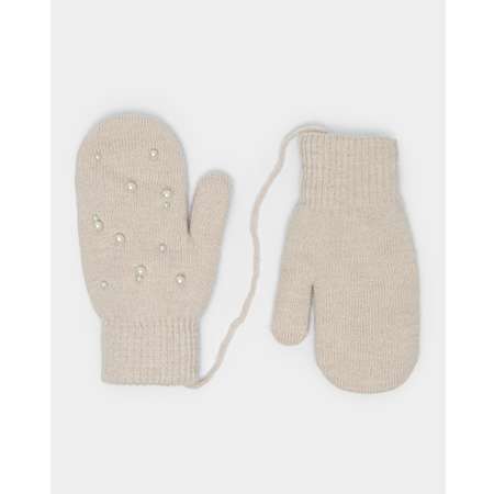 Двухслойные бежевые варежки для девочки Futurino, декорированные жемчужными бусинами.