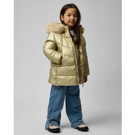 Стёганое пальто для девочки Futurino золотистого цвета.