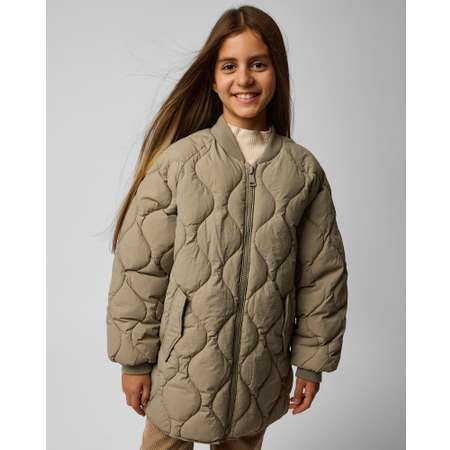 Стёганая куртка для девочки Futurino зелёно-бежевого цвета.