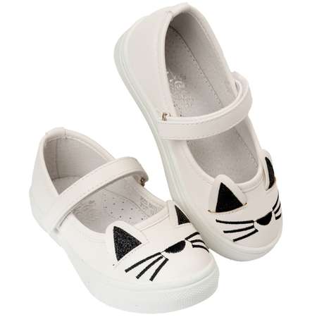 Туфли для девочки TikkaGo-это модная вещь в гардеробе ребенка для мероприятий или повседневной носки. Они идеальны для школьной сменки и танцев. Комфортные туфельки для малышки с классическим закрытым носом в стиле мэри джейн изготовлены из высококачественных материалов, которые обеспечивают им износостойкость и долговечность. Верх белых детских туфель для садика выполнен из экокожи и декорирован аппликацией с вышивкой в виде милой мордочки котика. Внутренняя мягкая подкладка из натуральной кожи проводит воздух и позволяет ногам дышать, поэтому весной и теплой осенью детям в них не будет жарко. Кожаная анатомическая стелька с подсводником компенсирует нагрузку в течение дня. Прямая подошва из ТЭП без каблука хорошо амортизирует и не пачкает пол, а через подъемный ремень на застежке липучке надежно зафиксирует стопу. Маленькая модница будет самой красивой летом на прогулке в городе или на празднике в саду. Удобные лодочки станут лучшим дополнением к нарядному платью для выступлений на праздничных утренниках и поднимут настроение своим стильным дизайном. Если Вы ищете оригинальный подарок внучке или легкие балетки для дочки, то это верный выбор! Представлены в размерах для ля детей дошкольного возраста: от годика до шести лет и школьниц первоклассниц. Гарантийный срок составляет 30 дней, с момента покупки.