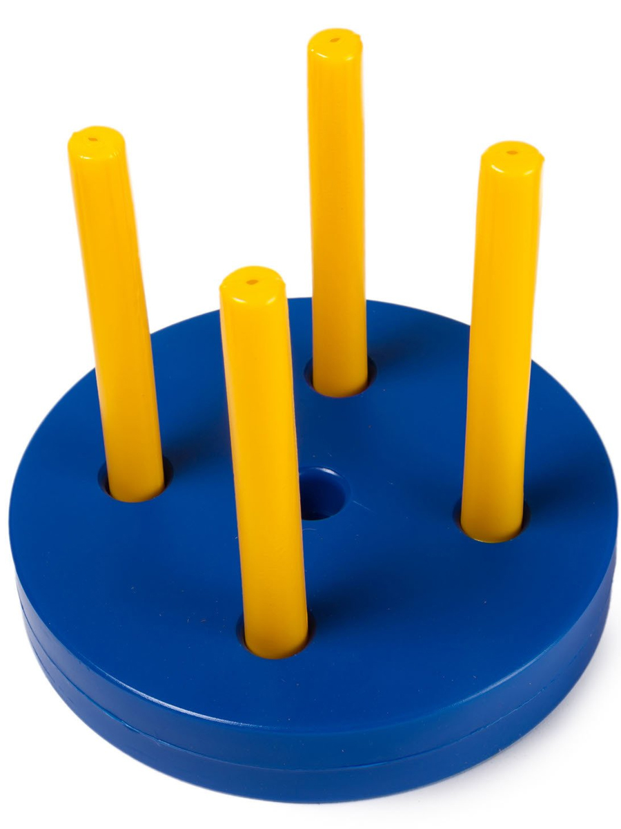 Основание (диаметр 17,4 см) с четырьмя штырьками (высота 12,8 см) и 9 фигурок.
