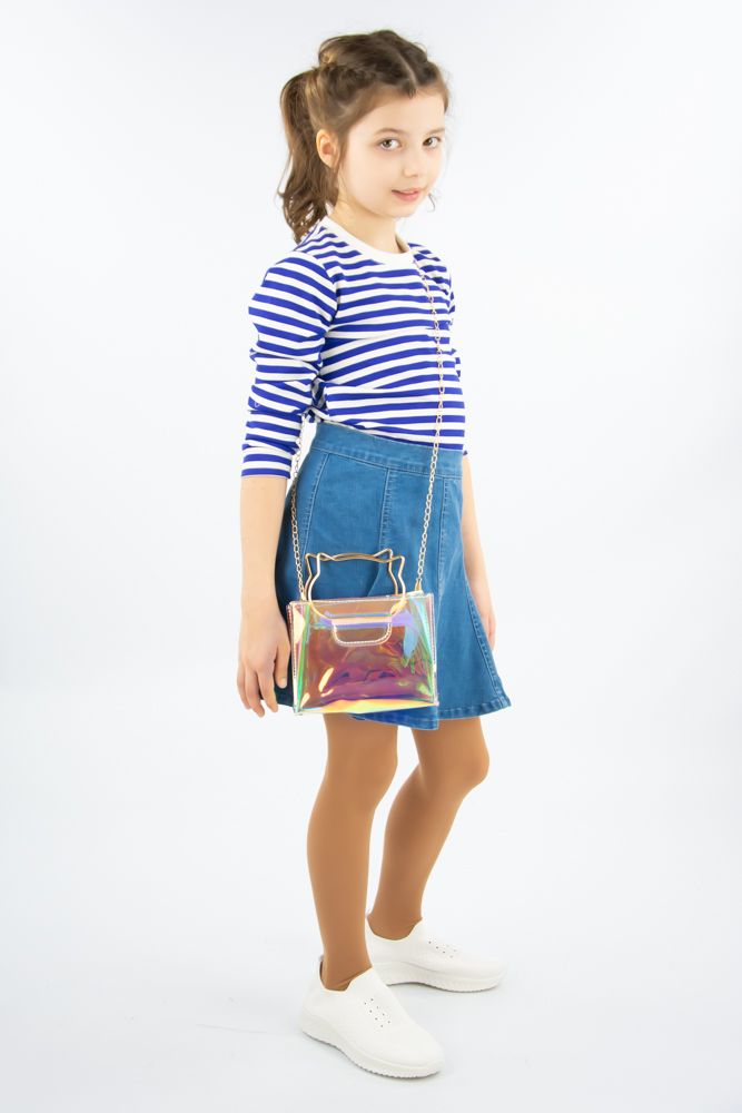 - Юбочка отличная! Джинса хорошего качества и сшита грамотно. Лежит мягкими складками, не задирается и попка у дочки прикрыта.