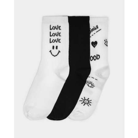 В комплекте Futurino три пары носков для девочки - две пары белых с надписями и однотонные чёрные.
