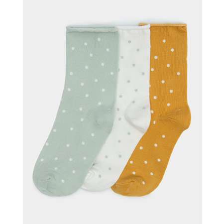 В комплекте Futurino три пары носков в горошек для девочки - мятные, белые и горчичные.