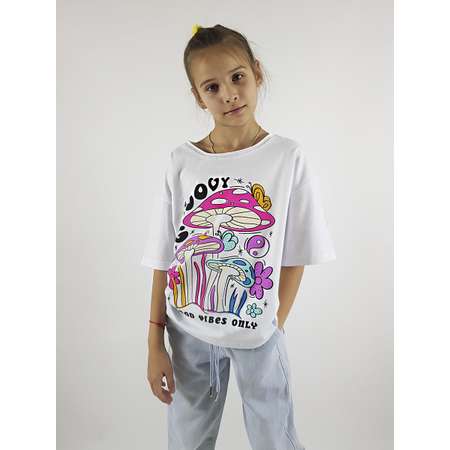 Легкая детская футболка оверсайз для девочки с рисунком на лето, с универсальным широким кроем, станет любимой базовой одеждой вашей модницы. Свободная и широкая, футболка oversize из хлопка станет незаменимой на летних тренировках по физкультуре или танцам. Она подарит ощущение свободы и уверенности каждой молодой леди. Современная молодежная футболка с принтом -это яркий летний акцент в гардеробе подростка. Завершающий штрих для создания яркого образа - оригинальный принт с элементами печати и декором на однотонной футболке. Эта модная трикотажная футболка хб со стильным дизайном призвана стать неотъемлемым элементом гардероба любой девочки. Мягкий трикотаж из 100% хлопка обеспечит комфорт в жаркие летние дни. А широкий крой футболки оверсайз для девочки добавят элегантности и легкости образу. Эта универсальная молодежная одежда премиум-класса из хлопкового трикотажа - прекрасный выбор для тех кто любит стильные детские вещи. Красивая, нарядная, легкая, современная футболка для подростка с оригинальной печатью и декором - это не просто элемент одежды, а отражение стиля и индивидуальности каждой молодой особы. Футболки с надписями для детей - это современный тренд вреди подростков. Премиум качество исполнения делает эту вещь универсальной: подходит как для занятий спортом или танцами, так и для повседневной носки в школу или садик.