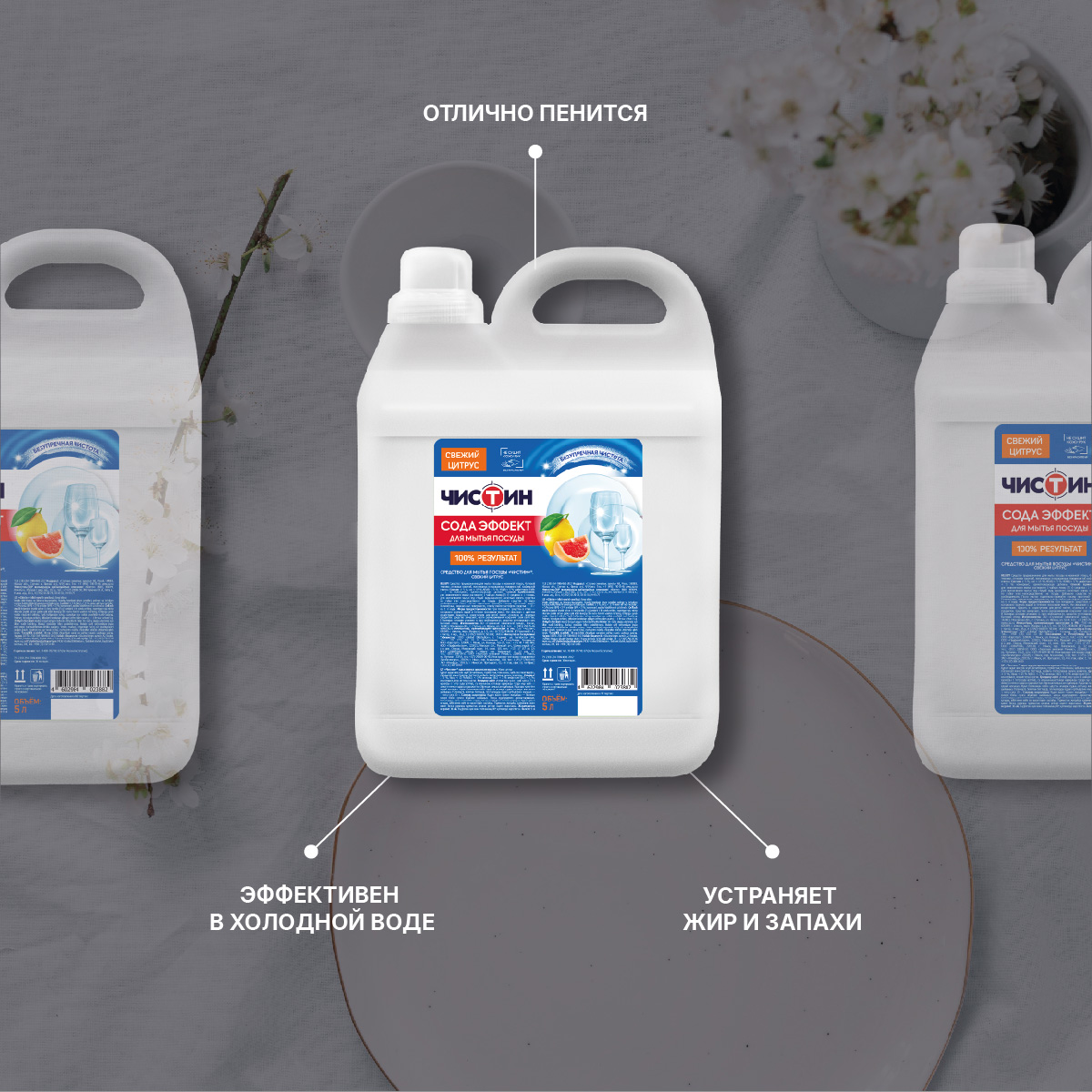 Средство для мытья посуды 5 литров – это высокоэффективный моющий гель, который удаляет жир, загрязнения и неприятные запахи со 100% результатом. При использовании образуется обильная пенка, что обеспечивает безупречную чистоту и сверкающий блеск после каждого мытья. Благодаря приятному аромату и сода эффекту ваша кухня будет наполнена запахом чистоты и свежести. Чистин гель не сушит кожу рук и полностью смывается, не оставляя следов и разводов. Гель для мытья посуды 5 литров отлично работает в холодной воде и имеет нейтральный pH. Благодаря густой формуле, товар расходуется экономично. Хозяйственные товары Чистин – это качественная и недорогая бытовая химия.