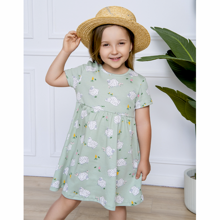 Платье с коротким рукавом состоит из износостойкой ткани интерлок.