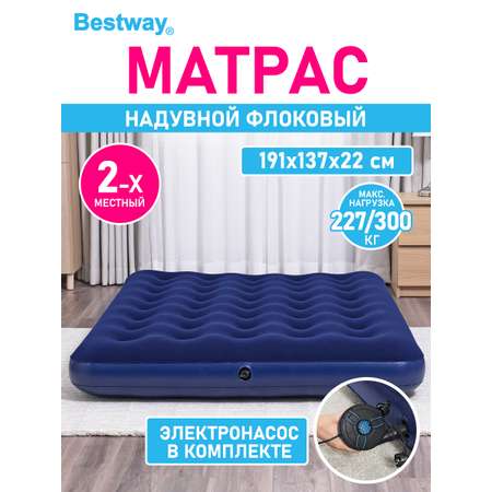 Матрас надувной флоковый Bestway 191х137х22 см электронасос в комплекте