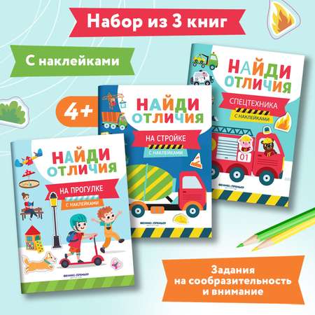 Набор из 3 книг Феникс Премьер Найди отличия. Книжки с наклейками для мальчиков