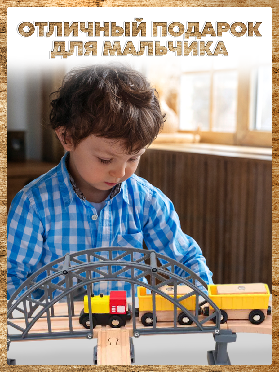 Наши детские игрушки проходят несколько этапов проверки и безопасны для малышей, мост выполнен из дерева, поэтому экологичен, прошел контроль качества и готов дарить малышу пользу и позитивные эмоции. В нашем магазине А.Паровозиков Вы найдете много других игрушек для детей всех возрастов, деревянные железные дороги, треки с поездами и составами, а также многое другое. Выбирайте для своих детей только самое лучшее!