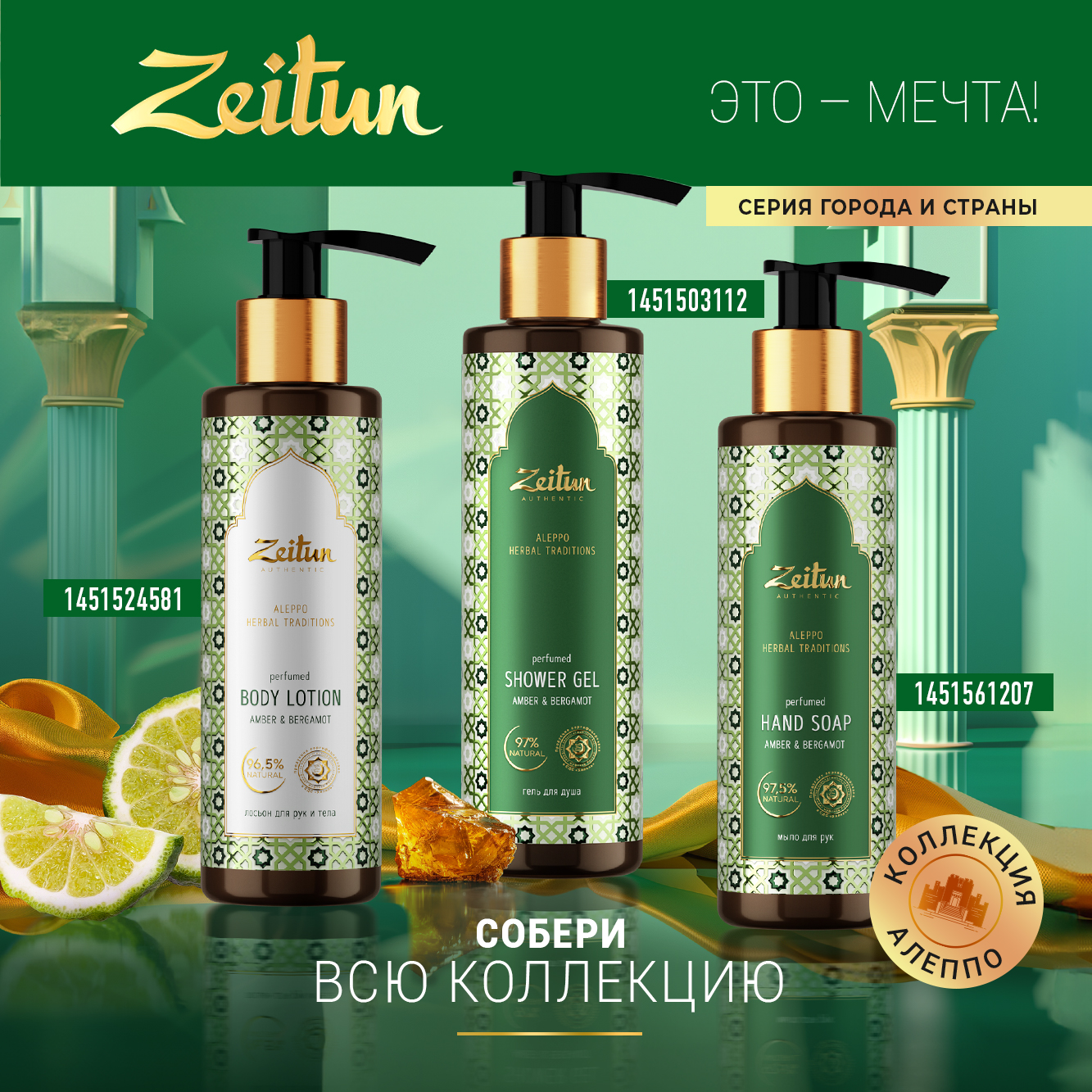 Погружайтесь в атмосферу согревающих восточных ароматов вместе с Zeitun! Парфюмированный гель для душа «Традиции Алеппо» очаровывает чувственными нотками апельсина, амбры, перца, бергамота, корицы и трав с первых мгновений. Дополнит мужские и женские наборы для гигиены на полках ванны благодаря универсальной формуле, которая подходит для любого типа кожи. Пантенол, аллантоин и мочевина обеспечат длительное увлажнение и защиту тела от сухости. Масло оливы сделает кожу нежной и мягкой, усилит увлажняющее действие. Средство прекрасно справится с очищением кожи после бани, создавая при этом расслабляющую ароматическую атмосферу. Натуральный по многим компонентам состав подарит особенно бережный мужской и женский уход за телом. Увлажняющий гель не содержит минеральных масел, парабенов и других вредных веществ.