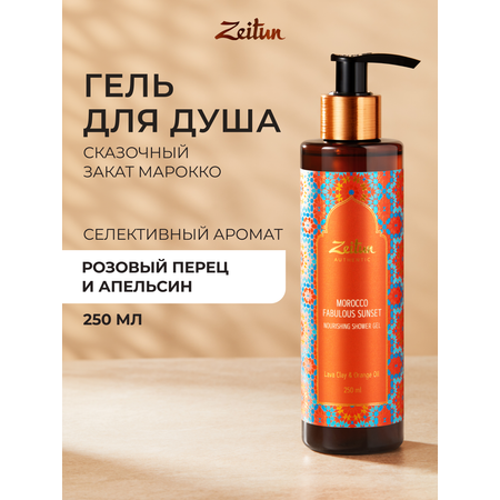 Наслаждайтесь особенной заботой о своей коже! Гель для душа «Сказочный закат Марокко» от Zeitun обеспечит бережное очищение тела и уход за ним. Состав с натуральными компонентами окажет питательное и восстанавливающее действия. Марокканская глина гассул обеспечит глубокое очищение от загрязнений и себума. Масло апельсина освежит кожу и улучшит ее тонус, масло арганы и пантенол окажут увлажняющее и смягчающее действия. Парфюмированный гель для душа украсит женский уход за собой чувственными нотками пряностей и цитрусовых фруктов. Натуральный состав с природными компонентами обеспечит длительное увлажнение и защиту от сухости. Флакон с дозатором поможет в удобном извлечении средства во время принятия ванны или душа, очищающих процедур после бани или бассейна.