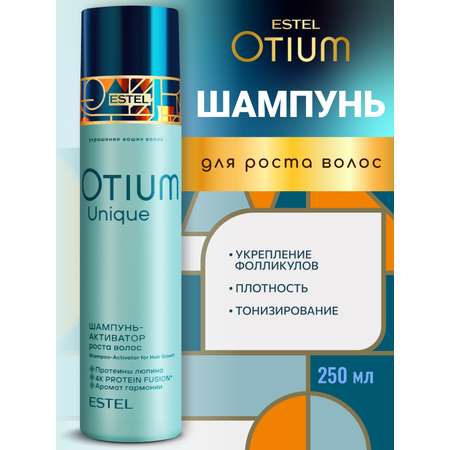 Профессиональный шампунь ESTEL OTIUM UNIQUE от выпадения волос пробуждает спящие волосяные фолликулы, активизирует микроциркуляцию кожи головы и насыщает корни питательными компонентами, обеспечивая естественное утолщение и ускоренный рост. Очищающий шампунь создан для укрепления волос. Экстракт берёзовых почек тонизирует кожу, улучшает кровообращение, способствует насыщению кислородом. Белок люпина питает и защищает от ломкости, восстанавливает силу и блеск по всей длине. Уникальная формула 4K PROTEIN FUSION, состоящая из 4 протеинов —кератин, коллаген, киноа и кашемир. Увлажняющий шампунь глубоко восстанавливает структуру волос, укрепляет волокна, возвращает эластичность и плотность. Волосы становятся более крепкими, гладкими и шелковистыми. Укрепляющий шампунь улучшит состояние секущихся концов и подойдет как для брюнеток и темных волос, так и для блондинок и светлых волос. Пантенол и природные увлажняющие вещества сохраняют влагу, делают локоны мягкими и послушными. Восстанавливающий шампунь с кератином против выпадения подходит для ослабленных и тонких волос. Он мягко очищает, не пересушивая, поддерживает естественный баланс и придаёт прядям свежесть. Благородный аромат с тёплыми древесно-цветочными нотами окутывает волосы лёгкой вуалью, создаёт атмосферу салонного ухода для волос. Регулярное использование помогает ускорить рост, сделать волосы более густыми, сильными и блестящими.