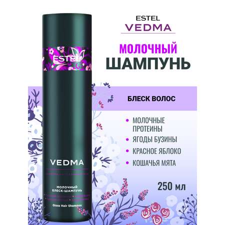 Профессиональный очищающий шампунь для блеска волос ESTEL VEDMA бережно очищает кожу головы и длину, не нарушая комфорт и природный баланс. Увлажняющий шампунь женский и мужской подходит для пушистых, ломких, тусклых, непослушных и сухих волос мягко очищает, устраняет тусклость, возвращает зеркальный блеск, облегчает расчёсывание и делает волосы более послушными. Молочные протеины, которые укрепляют структуру волоса, делают пряди более плотными и гладкими. Экстракт красного яблока наполняет влагой и придаёт свежесть, помогая волосам выглядеть живыми и сияющими. Ягоды бузины и растительные компоненты ухаживают за длиной, смягчают и улучшают внешний вид без утяжеления. Питательный шампунь Ведьма для брюнеток и темных, так и для блондинок и светлых волос с маслом сои поддерживает эластичность и защищает волосы от ломкости. Подходит для ежедневного применения, в том числе для прямых, окрашенных, кудрявых, волнистых и вьющихся локонов. После использования волосы становятся гладкими, шелковистыми и визуально более ухоженными. Появляется естественный блеск, длина выглядит ровной и живой.