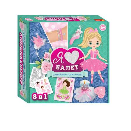 Большой набор для творчества для создания праздничного настроения!! Упаковка с 3D тиснением! Прекрасный подарок к праздникам. Окунитесь в мир балета, творчества и вдохновения! 8 изделий в 1 наборе. С помощью этого набора дети смогут самостоятельно сделать гелиевую свечу, обруч для волос, картину из пайеток, брелок из фетра, браслет и многие другие интересные изделия. Набор содержит все необходимое для создания творческих работ. 8 творческих изделий: гелевая свеча, обруч для волос, картинка из пайеток, релакс-раскраска, ароматизатор-сердечко, брелок из фетра, наклейки, браслет.Цены в интернет-магазине могут отличаться от розничных магазинов.
