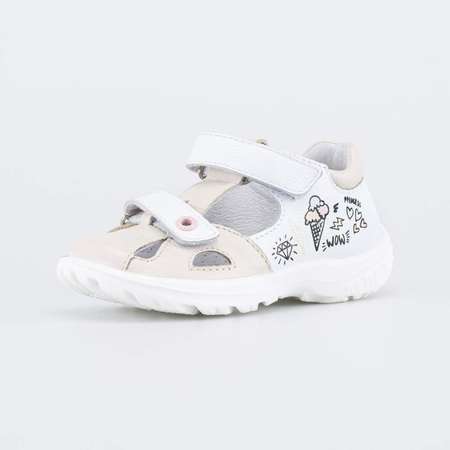 Сандалии, украшенные принтом, подходят для девочки, которая только начинает ходить. Верх, подкладка и стелька выполнены из натуральной кожи - износостойкого, гипоаллергенного и дышащего материала. Закрытая пятка надежно фиксирует стопу, а закрытый носок предохраняет пальчики от возможных травм. Липучка-велькро в нижней части позволяет отрегулировать обувь по подъему, в верхней – быстро обуваться и разуваться. Подошва изготовлена из ПУ (полиуретана) - гибкая, эластичная и амортизирующая. Модель анатомически правильная: имеет небольшую приподнятость пяточной части по отношению к носочной и в меру жёсткий задник. Сделано в России.
