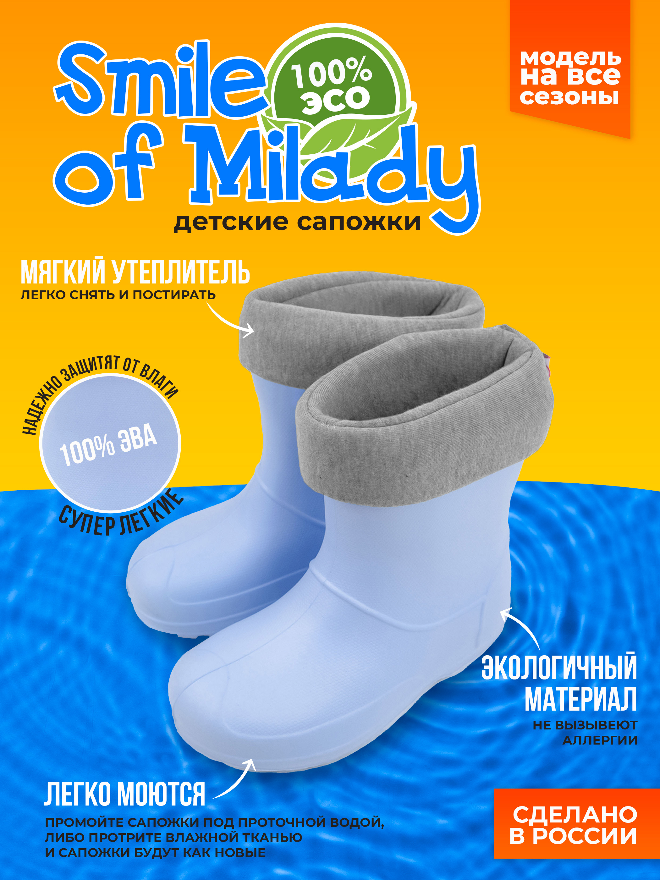 Сапоги резиновые детские Smile of Milady - это обувь, которая прекрасно подойдет для осени и весны. Они сделаны из качественного материала ЭВА, который является прочным и долговечным. Сапожки резиновые для детей на тракторной подошве не только удобные, но и надежно защищают ножки от влаги и холода.