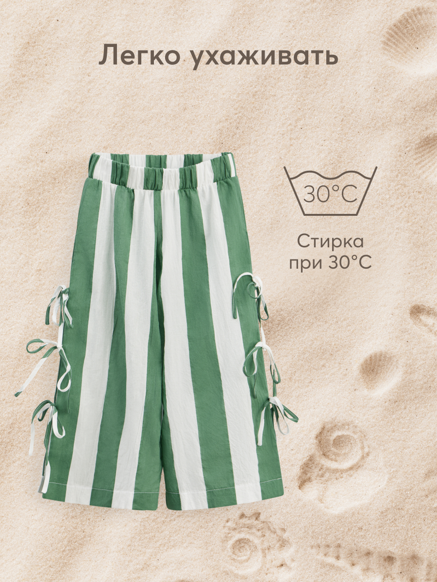 Штаны для девочки прямого кроя с разрезами на завязках вдоль штанин. Модное и интересное решение для праздника или жаркого лета. Детские палаццо со стильными принтами нового сезона обязательно понравятся вашему малышу. Актуальный крой и цвет позволяют сочетать их с любыми вариантами верха. Брюки на мальчика подходят как для детского сада, так и для отпуска у моря.