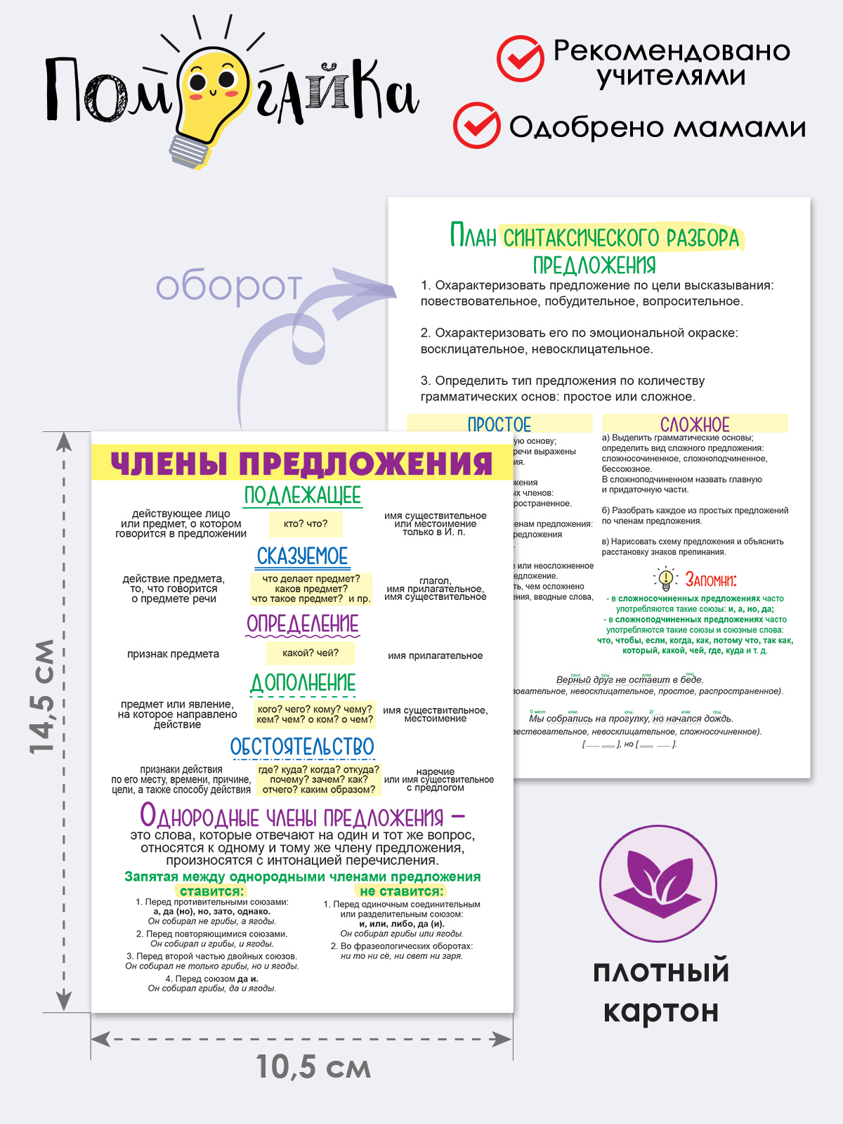Набор карточек «Помогайка» по русскому языку станет отличным помощником вашему ребенку с выполнением домашнего задания! Такая шпаргалка для мальчиков и девочек поможет упорядочить накопленные на уроках знания. В наборе 18 двусторонних карточек (всего 36 конспектов), материал – плотный картон, размеры 106х146 мм. «Помогайку» очень удобно использовать дома, когда ребенок делает уроки. В карточках собраны все важные памятки и необходимые правила, которые, возможно, не удалось усвоить на занятиях. Наглядное пособие удобного формата помогает упорядочить полученные знания и заполнить возможные пробелы, закладывает прочную базу для дальнейшего обучения. У учащегося создается цельная картина изучаемого предмета. «Помогайка» по русскому языку активизирует зрительную память – информация расположена таким образом, что учащимся легко вспомнить необходимое в нужный момент. Благодаря использованию качественных красок изображения и текст не выцветут и не потускнеют спустя время, так что ребенок сможет повторить пройденный материал в любой момент. Это идеальный помощник при подготовке к ОГЭ, ЕГЭ и другим экзаменам, готовый конспект, охватывающий все нужные темы. Хорошо подойдет для ученика средней школы, школьника или для студента, чтобы подтянуть и закрепить свои знания. Карточки компактные, их удобно хранить и использовать. Подходит для дома, для школы. В серии "Помогаек" представлены пособия и дидактические материалы по разным уровням всех основных предметов школьной программы. В ассортименте есть карточки, плакаты, буклеты, шпаргалки на пикколо. Учитесь с удовольствием!Цены в интернет-магазине могут отличаться от розничных магазинов.