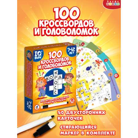 В комплекте 50 двухсторонних карточек, стирающийся маркер, брошюра с правилами и ответами.