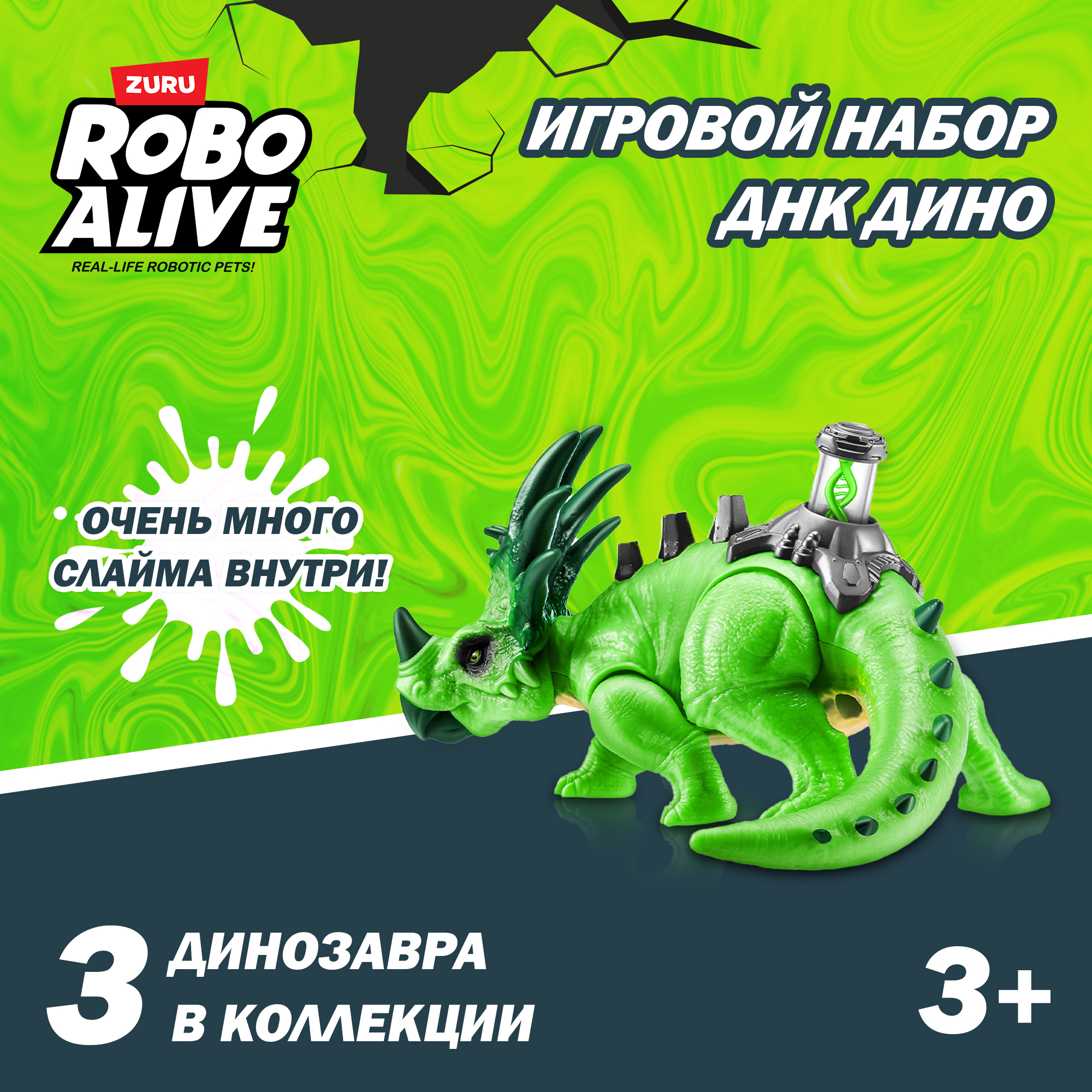 Раскройте тайны прошлого с игровым набором Helix Spine с подсветкой ДНК от Robo Alive Dino (ЗУРУ). Распакуйте и найдите среди огромного количества слайма, все части динозавров и создайте эпических доисторических дино. 3 динозавра, которые нужно собрать и собрать. Пришло время раскрыть тайны прошлого и стать внутренним палеонтологом с этой крутой игрушкой для мальчиков.