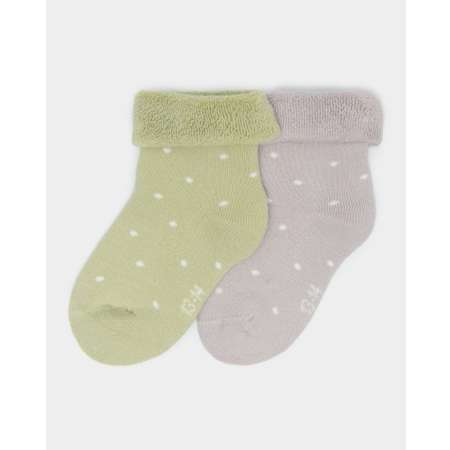 В комплекте Baby Gо две пары махровых носков в горошек для девочки - розовые и мятные.