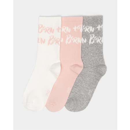 В комплекте Futurino три пары носков с надписями для девочки - розовые, белые и серые.