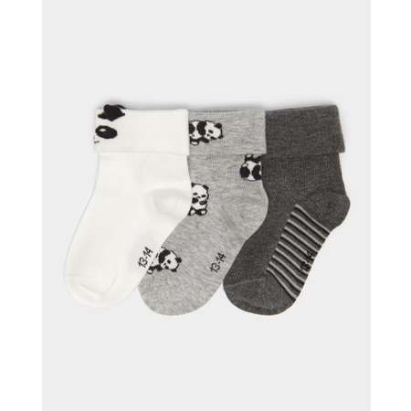 В комплекте Baby Gо три пары носков для мальчика - тёмно-серые, а также белые и светло-серые с пандами.