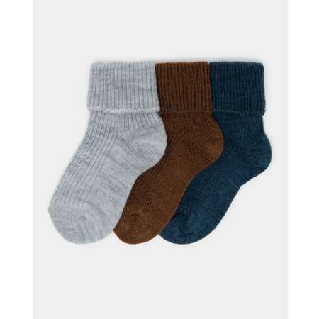 В комплекте Baby Gо три пары однотонных шерстяных носков для мальчика - коричневые, светло-серые и тёмно-серые.