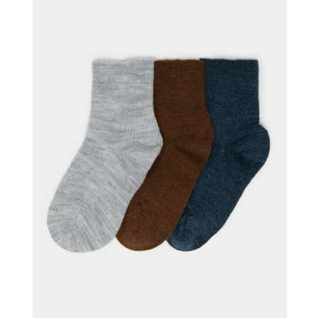 В комплекте Futurino три пары однотонных шерстяных носков для мальчика - коричневые, светло-серые и тёмно-серые.