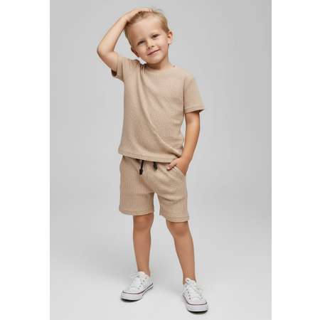 Летний комплект для мальчика выполнен из вафельного трикотажа.