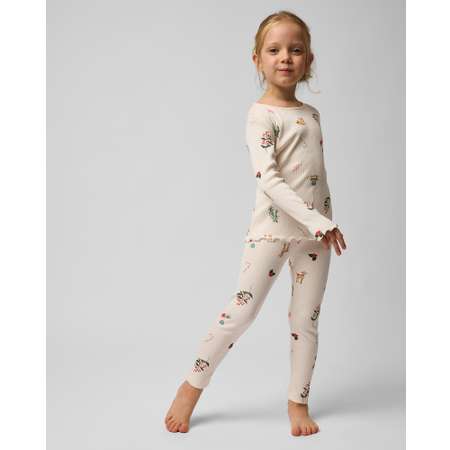 Новогодняя пижама для девочки Futurino из лонгслива и легинсов, декорированных цветным принтом.
