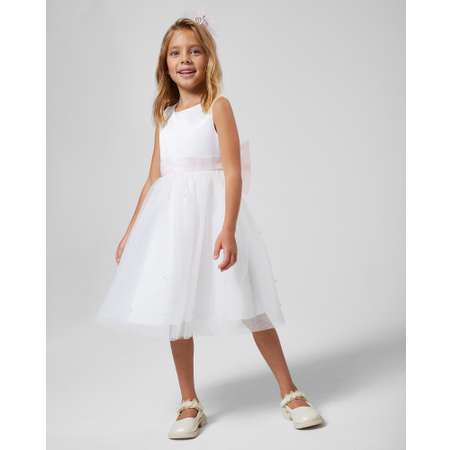 - Платье потрясающе красивое, очень аккуратно сшито, атласный верх, хб подклад, пышная фатиновая юбка как у балерины расшита жемчужинками, красивая спинка с шикарным бантом, смотрится очень изящно.