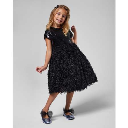 Чёрное праздничное для девочки Orsolini с пайетками в верхней части и фактурной объёмной юбкой.