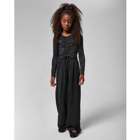 Широкие блестящие брюки для девочки Orsolini тёмно-серого цвета.